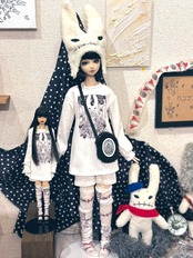 元は2025年の櫁蜂展で人間用サイズで作成されたものでしたが、大変好評だったためドールサイズでも作成していただきました。櫁蜂さんのヘンナコ模様がプリントされているキュートなソックスです。