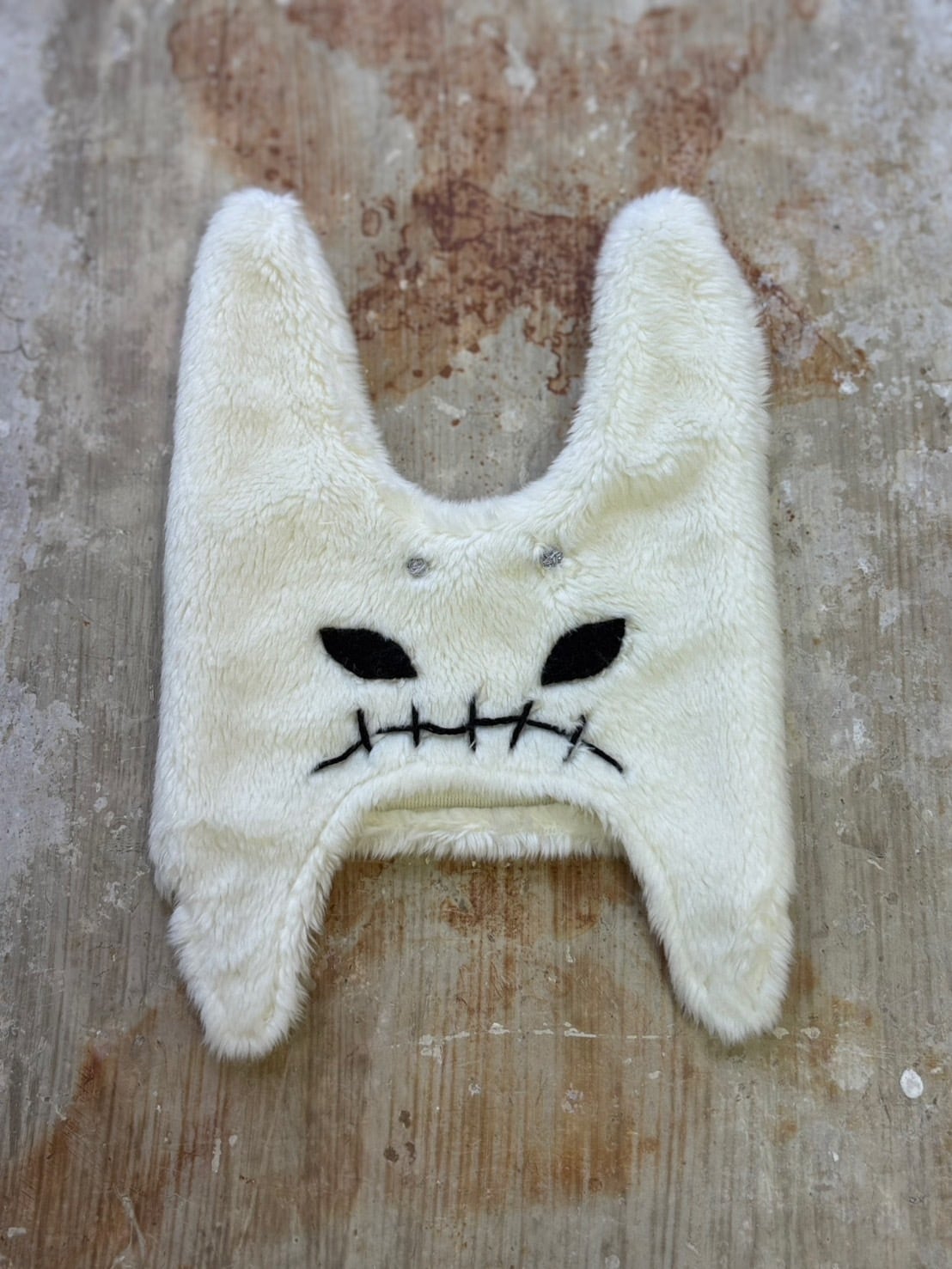 色は2色、手触りの良いファーにヘンナコの顔が刺繍されています。